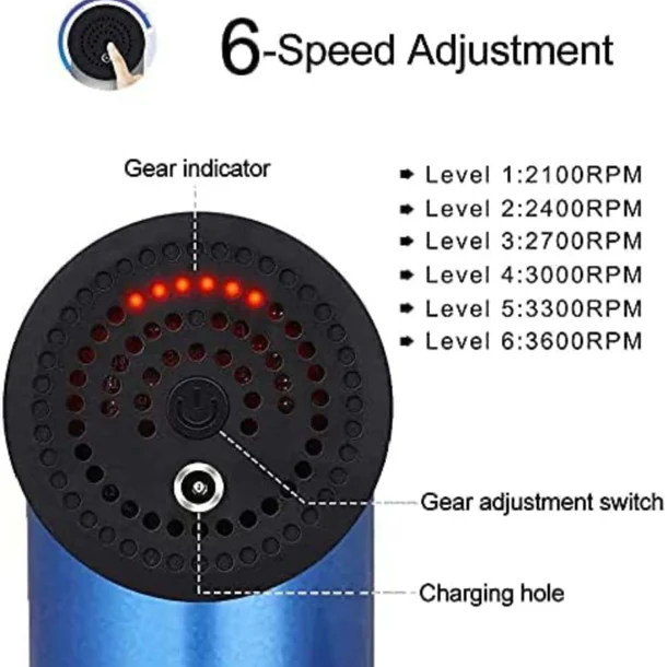 - Shpejtësi të Rregullueshme: Mundëson rregullimin e shpejtësisë nga 1200 deri në 3200 rrotullime në minutë, duke ju lejuar të zgjidhni intensitetin e dëshiruar të masazhit.